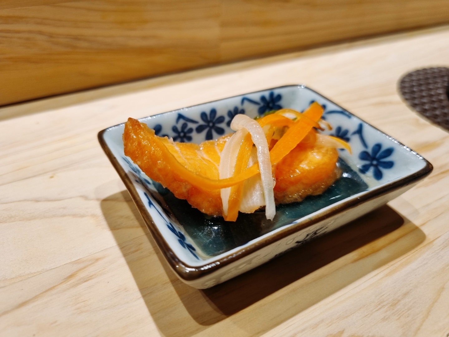 그 다음 메뉴는 연어 튀김 절임이라고 합니다. 겉바속초.... 츄릅..