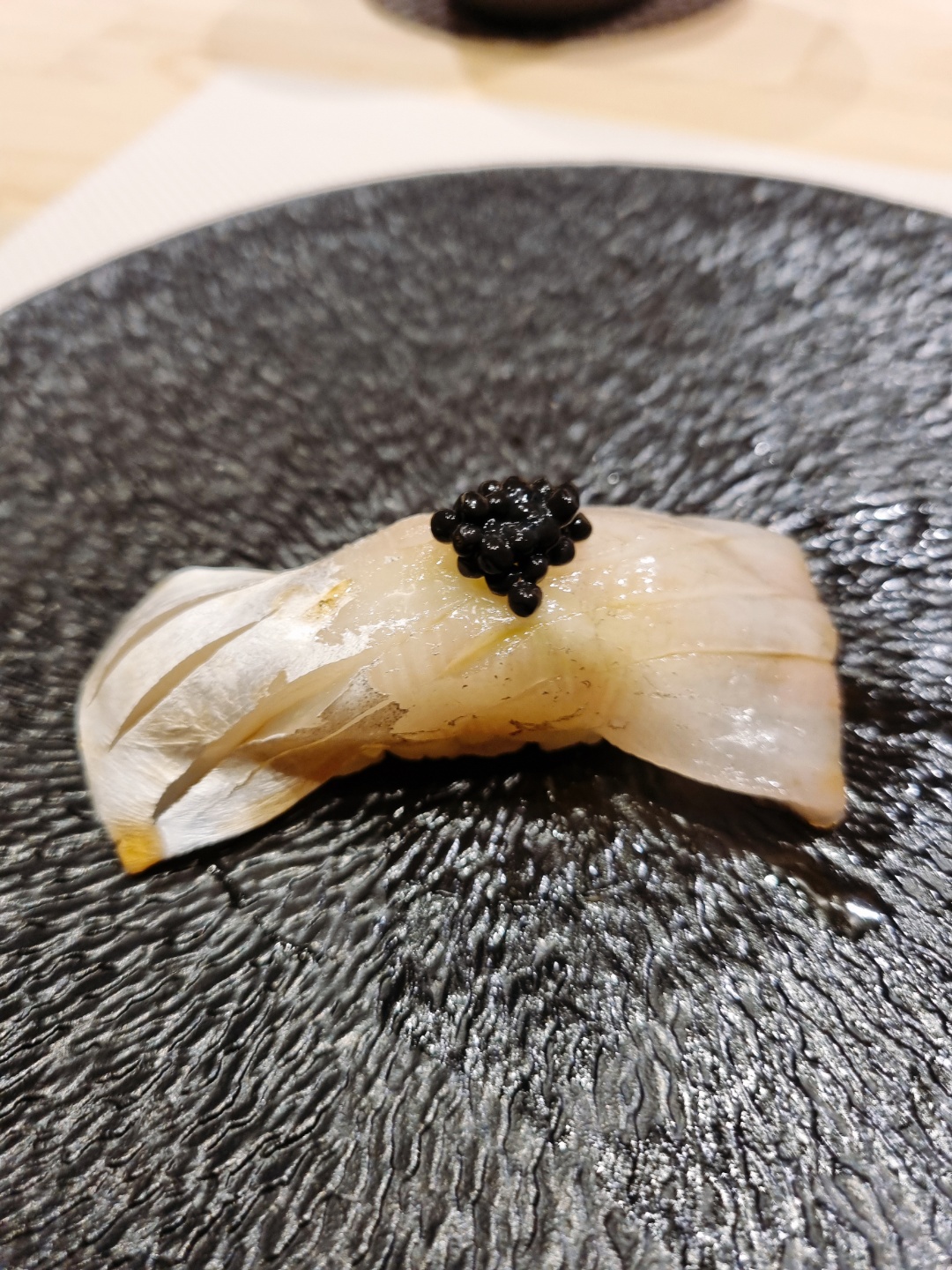 케..케비어!!!?를..!!? 이라고 생각했지만 농어알이라고 합니다ㅎㅎ 농어뱃살 초밥! 부드럽다..