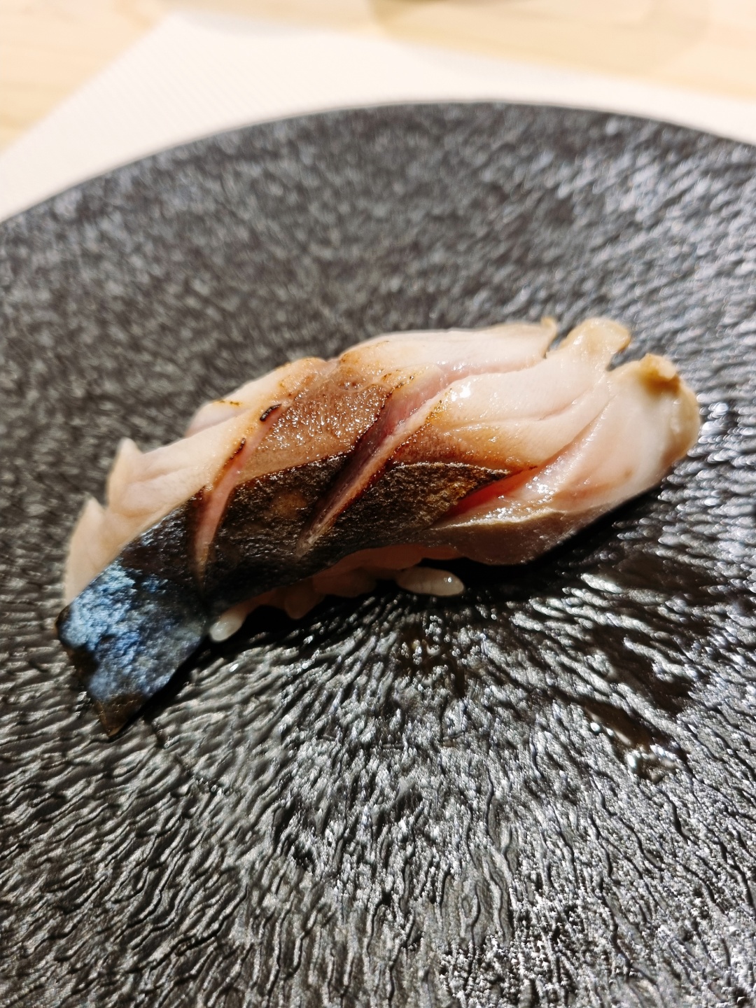 엇... 비릿함을 싫어하는 프뚜... 고등어 초밥이 나왔습니다. 쉐프님께 비릿한 걸 못 먹는다고 말씀드렸더니 토치로 살짝 구워주셨습니다. 그 맛은.. 비릿함 제로, 담백함 X 100% .... 안 먹었으면 후회했습니다..