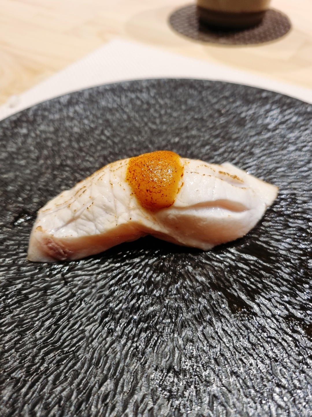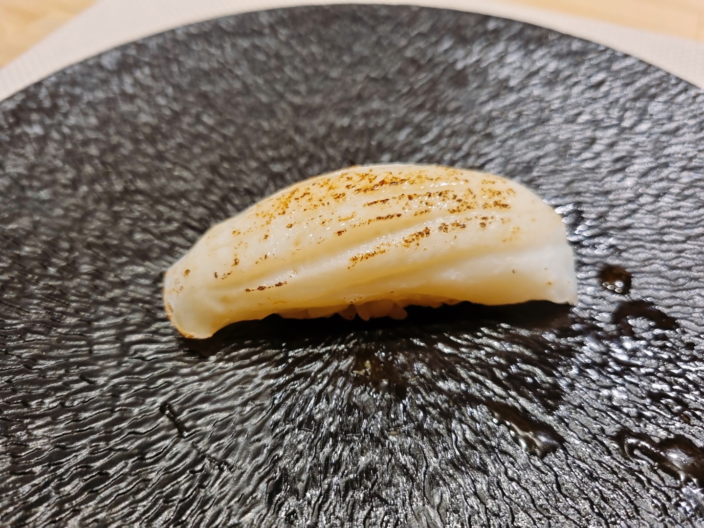 회를 먹고 나면 처음으로 만나게 되는 초밥은 광어초밥이였습니다. 위에 트러플 소스를 추가했기 때문에 간장을 찍지말고 먹으라고 쉐프님께서 추천해주시더라구요! 맛은.. 정말......