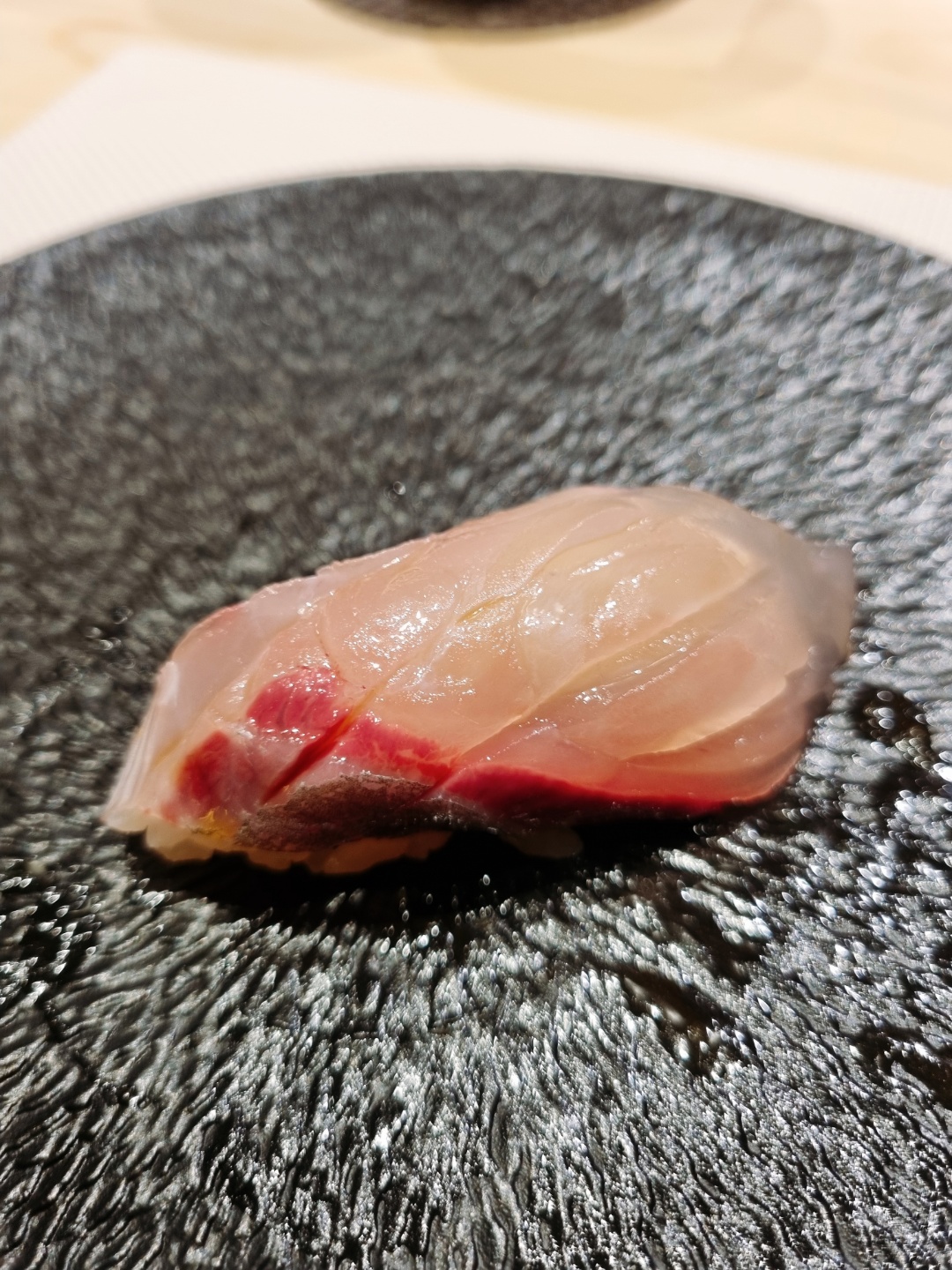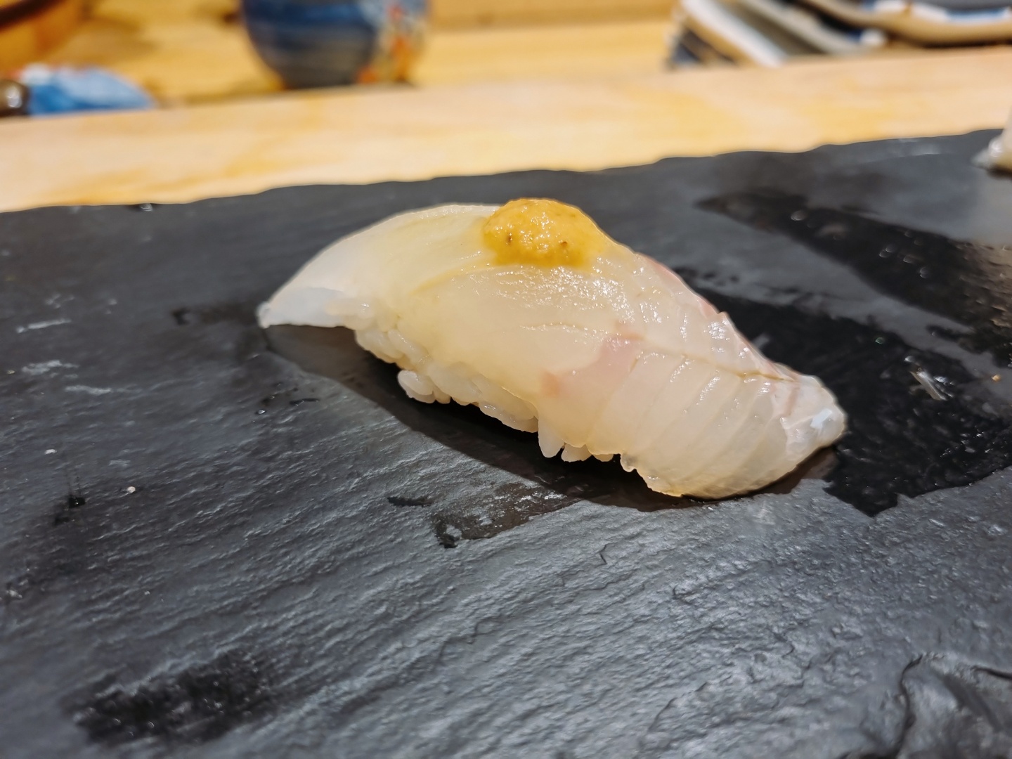 트러플에 정신을 못 차리고 있는데... 참돔 초밥이 나왔습니다. 참돔은 바다의 여왕이라고 불린다고 하더라구요. 정말 쫄깃했습니다.