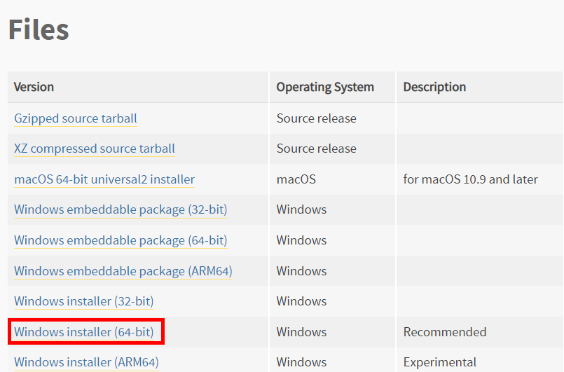 Windows installer (64-bit) 를 클릭하시면 바로 다운받을 수 있습니다.