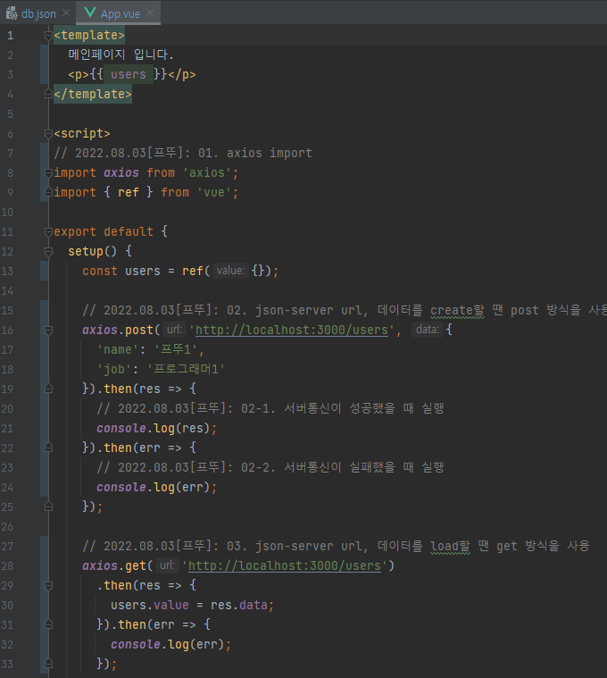 | [VUE] json-server 설치 및 사용하기 (0) | 2022.08.03 |