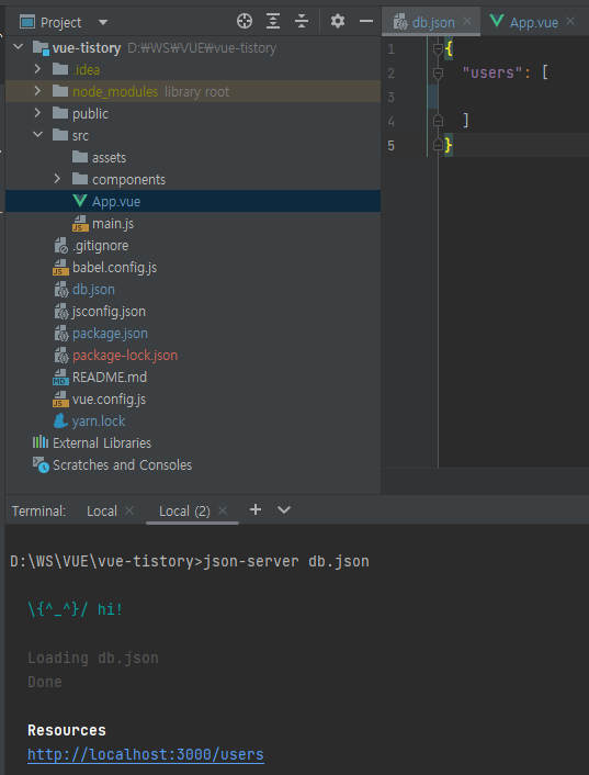 2. db.json에 값 비워놓기 (json-server 설치가 되어있지 않으면 링크를 통해 진행하기)